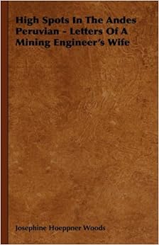 Revealing Letters From High Peru; A Mining Engineer's Wife ... Revealing Letters From High Peru; A Mining Engineer's Wife on the Country and The People of the Andes By R.L. DUFFUS FEB. 24, 1935 Continue reading the main story Share This Page High spots in the Andes; Peruvian letters of a mining ... Get this from a library! High spots in the Andes; Peruvian letters of a mining engineer's wife,. [Josephine Hoeppner Woods, Mrs.] High Spots in the Andes Peruvian - Letters of a Mining ... High Spots in the Andes Peruvian - Letters of a Mining Engineer's Wife Many of the earliest books, particularly those dating back to the 1900s and before, are now extremely scarce and increasingly expensive. We are republishing these classic works in affordable, high quality, modern editions, using the original text and artwork.