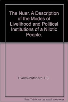 Full text of "The Nuer : a description of the modes of ... Console Living Room. ... Full text of "The Nuer : a description of the modes of livelihood and political institutions of a Nilotic people" See other formats ... The Nuer: A Description of the Modes of Livelihood and ... Published in 1940 and written against the backdrop of British colonial rule, The Nuer: A description of the modes of livelihood and political institutions of a Nilotic people is the first among the trilogy of books penned on this people by the renowned anthropologist Evans- Pritchard (the other two being Kinship and marriage among the ... The Nuer : a description of the modes of livelihood and ... The Nuer : a description of the modes of livelihood and political institutions of a Nilotic people by Evans-Pritchard, E. E. (Edward Evan), 1902-1973 Publication date 1940
